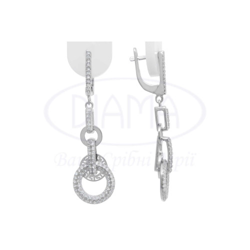 Сережки срібні з білим цирконом. Срібло 925 проби, покрите родієм. В комплекті каблучка, сережки та підвіска.