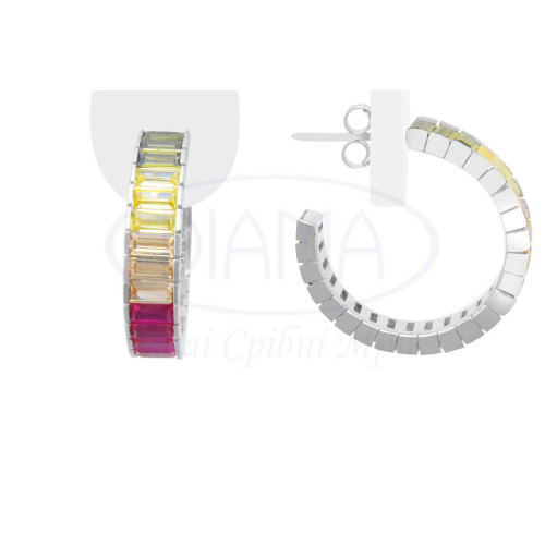 Сережки срібні з різнокольоровим цирконом. Срібло 925 проби, покрите родієм. В комплекті каблучка, підвіска та сережки.