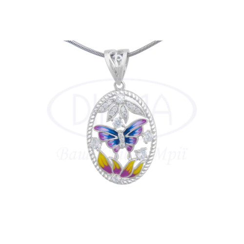 Срібна підвіска з кольоровою емаллю та білим цирконом. Срібло 925 проби, покрите родієм. В комплекті каблучка, сережки та підвіска.