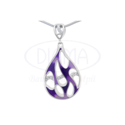 Срібна підвіска у формі краплі з кольоровою емаллю та білим цирконом. Срібло 925 проби, покрите родієм. В комплекті каблучка, сережки та підвіска.