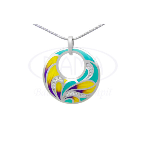 Срібна підвіска з кольоровою емаллю та білим цирконом. Срібло 925 проби, покрите родієм. В наборі є каблучка, сережки та підвіска.