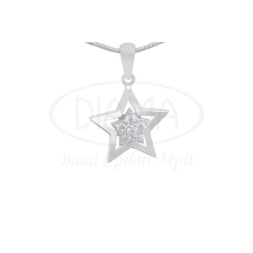 Підвіска срібна в формі зірки з білим цирконом. Срібло 925 проби, покрите родієм. В наборі є каблучка, сережки та підвіска