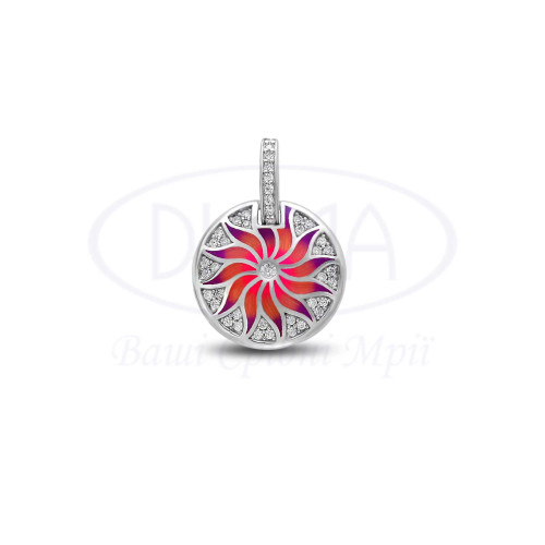 Срібна підвіска з кольоровою емаллю у вигляді квітки та білим цирконом. Срібло 925 проби, покрите родієм. Діаметр круга 16 мм. В комплекті каблучка, сережки та підвіска.