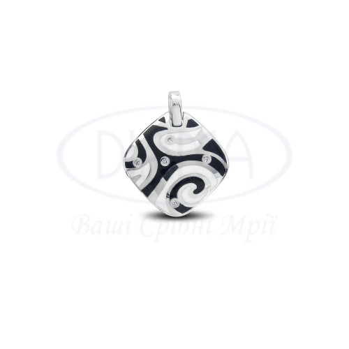 Срібна підвіска з кольоровою емаллю та білим цирконом у формі ромба. Срібло 925 проби, покрите родієм. В комплекті каблучка, сережки та підвіска. Розмір головного елементу 20х20 мм.