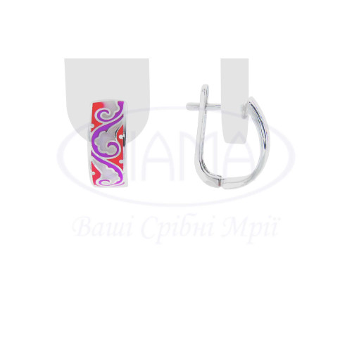 Срібні сережки з кольоровою емаллю. Срібло 925 проби, покрите родієм. В комплекті каблучка, сережки та підвіска. Розмір сережки 6х15 мм.