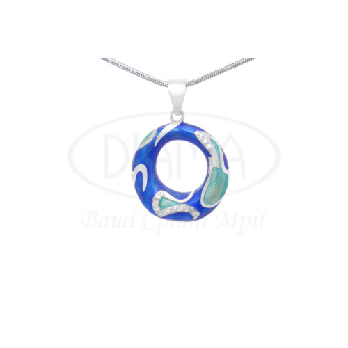 Срібна підвіска з кольоровою емаллю та білим цирконом. Срібло 925 проби, покрите родієм. В комплекті каблучка, сережки та підвіска.