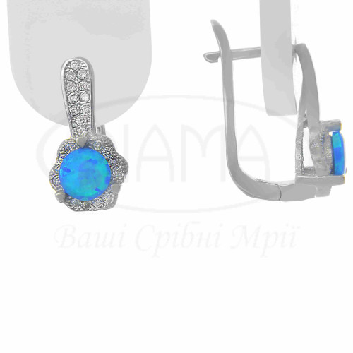 Сережки срібні з синім опалом та білим цирконом. Срібло 925 проби, покрите родієм. В комплекті каблучка, підвіска та сережки.