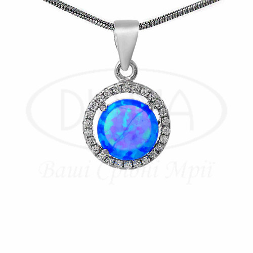Підвіска срібна з синім опалом та білим цирконом. Срібло 925 проби, покрите родієм. До комплекту входить каблучка, підвіска та сережки.