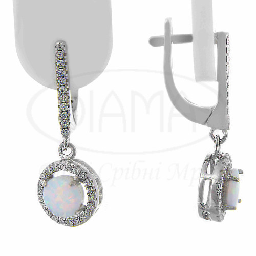 Сережки срібні з білим опалом та білим цирконом. Срібло 925 проби, покрите родієм. До комплекту входить каблучка, підвіска та сережки.