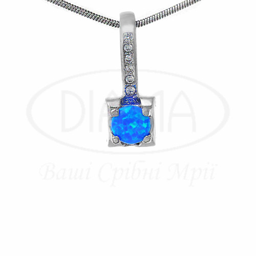 Підвіска срібна з синім опалом та білим цирконом. Срібло 925 проби, покрите родієм. До набору входить каблучка, підвіска та сережки.