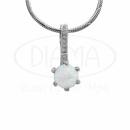 Підвіска срібна з білим опалом та білим цирконом. Срібло 925 проби, покрите родієм. В комплекті каблучка, підвіска та сережки.