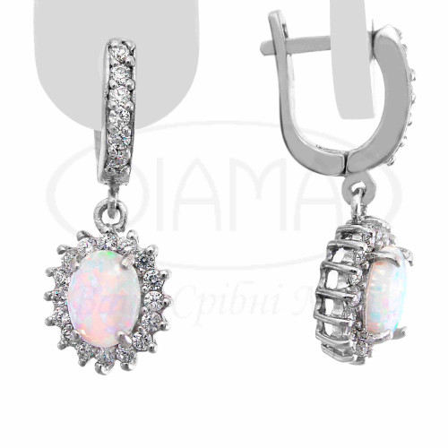 Сережки срібні з білим опалом та білим цирконом. Срібло 925 проби, покрите родієм. В комплекті каблучка та сережки.