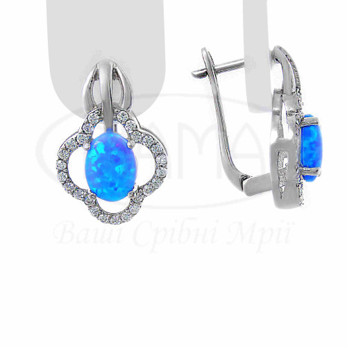 Сережки срібні з синім опалом та білим цирконом. Срібло 925 проби, покрите родієм. До набору входить каблучка та сережки.