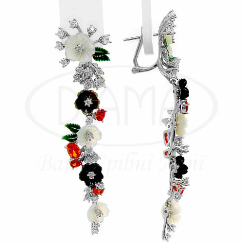 Срібні сережки з кольоровим цирконом та перламутром, в стилі Роберто Браво. Срібло 925 проби, покрите родієм. В комплекті каблучка та сережки.