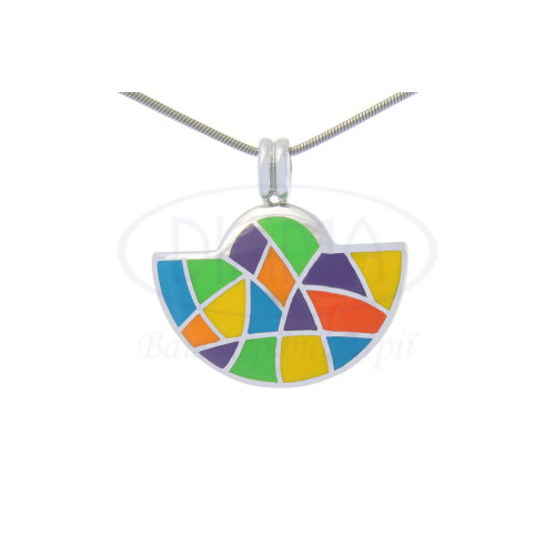 Срібна підвіска з кольоровою емаллю. Срібло 925 проби, покрите родієм. Комплект складається з каблучки, підвіски та сережок.