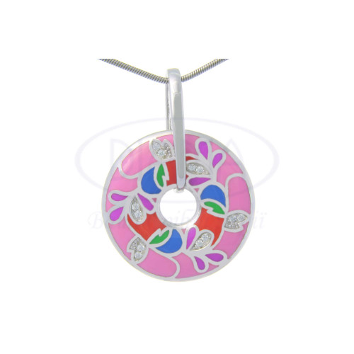 Срібна підвіска з кольоровою емаллю та білим цирконом. Срібло 925 проби, покрите родієм. Комплект складається з каблучки, підвіски та сережок.