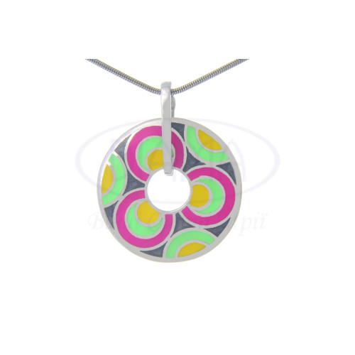 Срібна підвіска з кольоровою емаллю. Срібло 925 проби, покрите родієм. В наборі каблучка, підвіска та сережки.