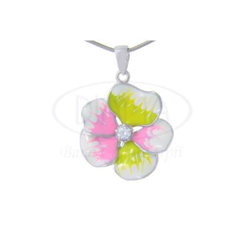 Срібна підвіска з кольоровою емаллю та білим цирконом. Срібло 925 проби, покрите родієм. В наборі каблучка, підвіска та сережки.