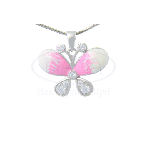 Срібна підвіска з кольоровою емаллю та білим цирконом. Срібло 925 проби, покрите родієм. До комплекту входить каблучка, підвіска та сережки.