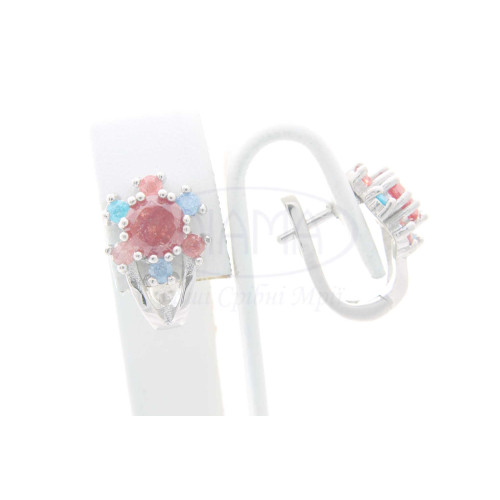 Сережки срібні з різнокольоровим цирконом. Срібло 925 проби, покрите родієм. В комплекті також є каблучка.