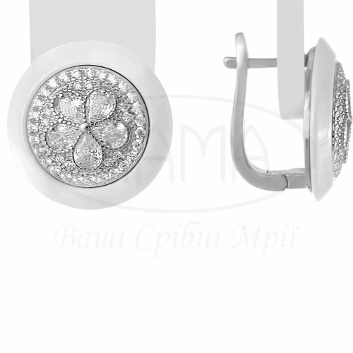 Сережки срібні з білою керамікою та білим цирконом. Срібло 925 проби, покрите родієм. Комплект складається з каблучки, підвіски та сережок.