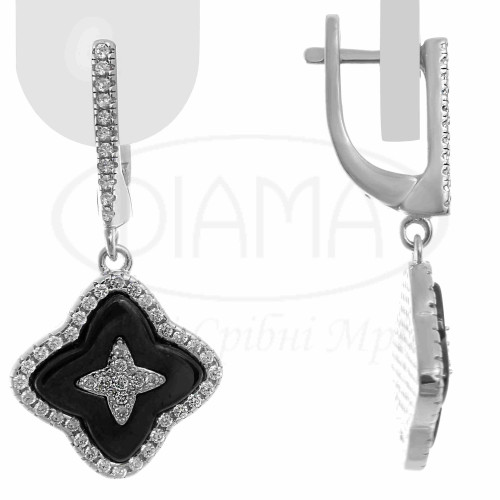 Сережки срібні з чорною керамікою та білим цирконом. Срібло 925 проби, покрите родієм. Комплект складається з каблучки, підвіски та сережок.