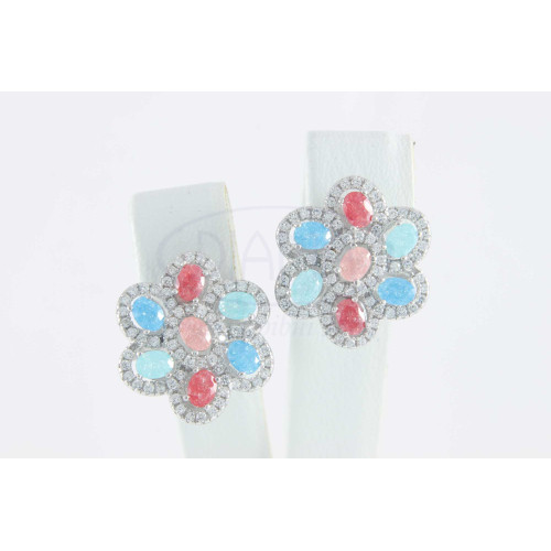 Сережки срібні з різнокольоровим цирконом. Срібло 925 проби, покрите родієм. Комплект складається з каблучки та сережок.