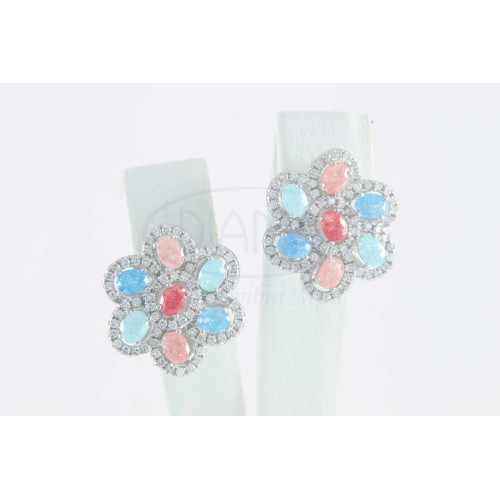 Сережки срібні з різнокольоровим цирконом. Срібло 925 проби, покрите родієм. Комплект складається з каблучки та сережок.