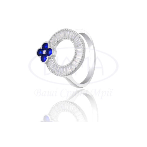 Каблучка срібна з білим та синім цирконом. Срібло 925 проби, покрите родієм. В комплекті каблучка, підвіска та сережки.
