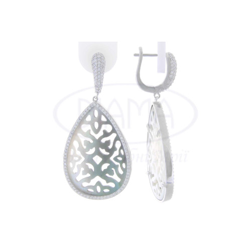 Срібні сережки 925 проби з чорним перламутром, покриті родієм.