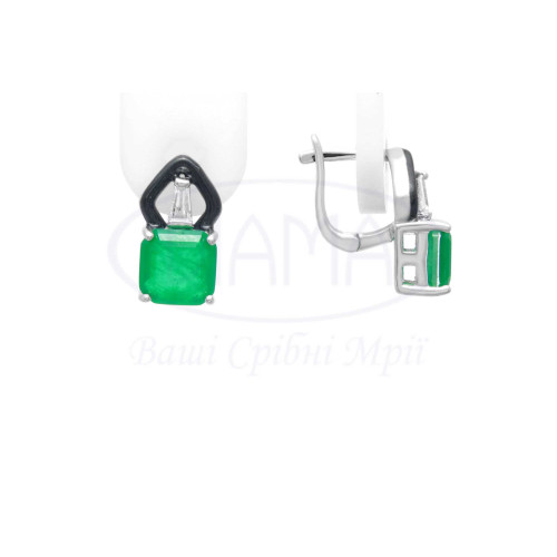 Сережки срібні з зеленим цирконом та чорною емаллю. Срібло 925 проби, покрите родієм. В наборі присутні каблучка, сережки та підвіска.