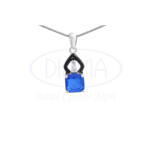 Підвіска срібна з синім цирконом та чорною емаллю. Срібло 925 проби, покрите родієм. В наборі присутні каблучка, сережки та підвіска.