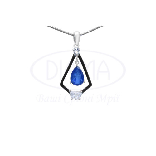 Срібна підвіска з синім та білим цирконом та чорною емаллю. Срібло 925 проби, покрите родієм. В наборі присутні каблучка, сережки та підвіска.